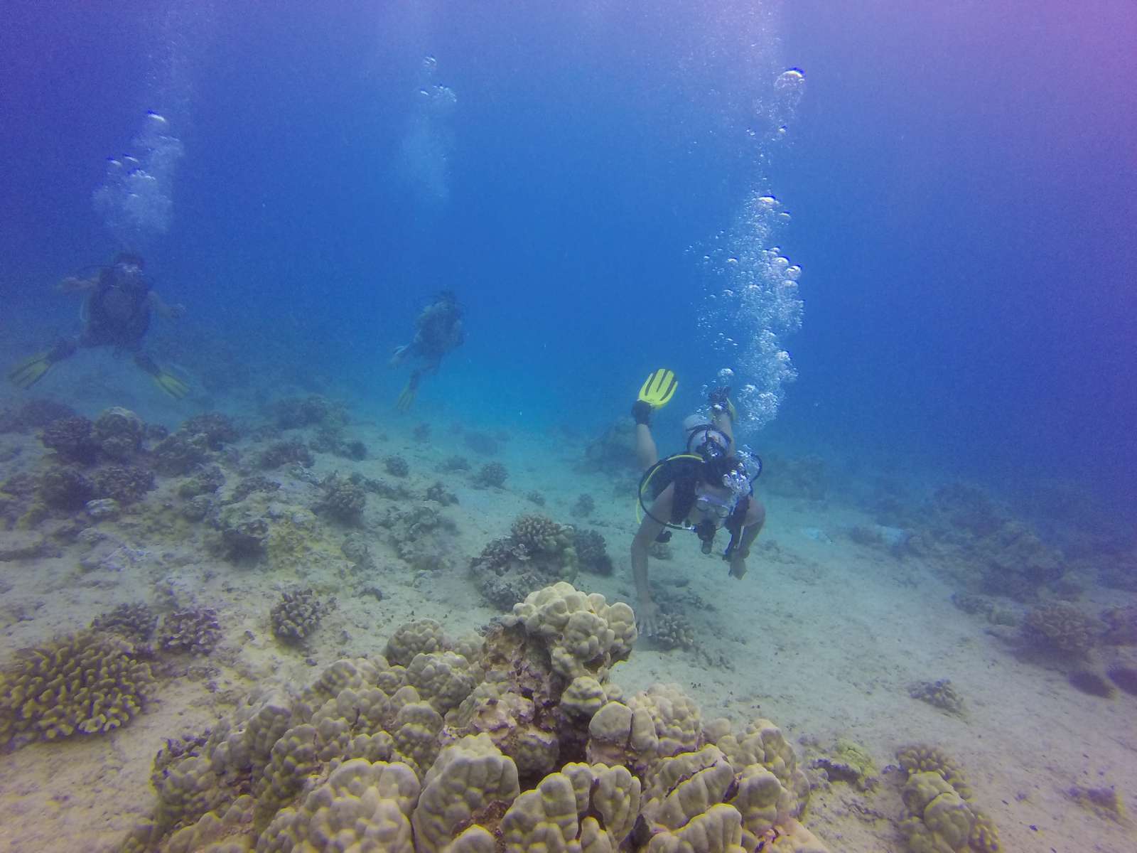 With our team from Hong Kong we explored the senic reefs of Honolulu Hawaii today. First dive location was Kewalo pipe reef with a depth of about 35' for about 30 miinutes underwater. Second dive site was over to turtle ridge with maximum depth of about 40' for about 40 minutes.