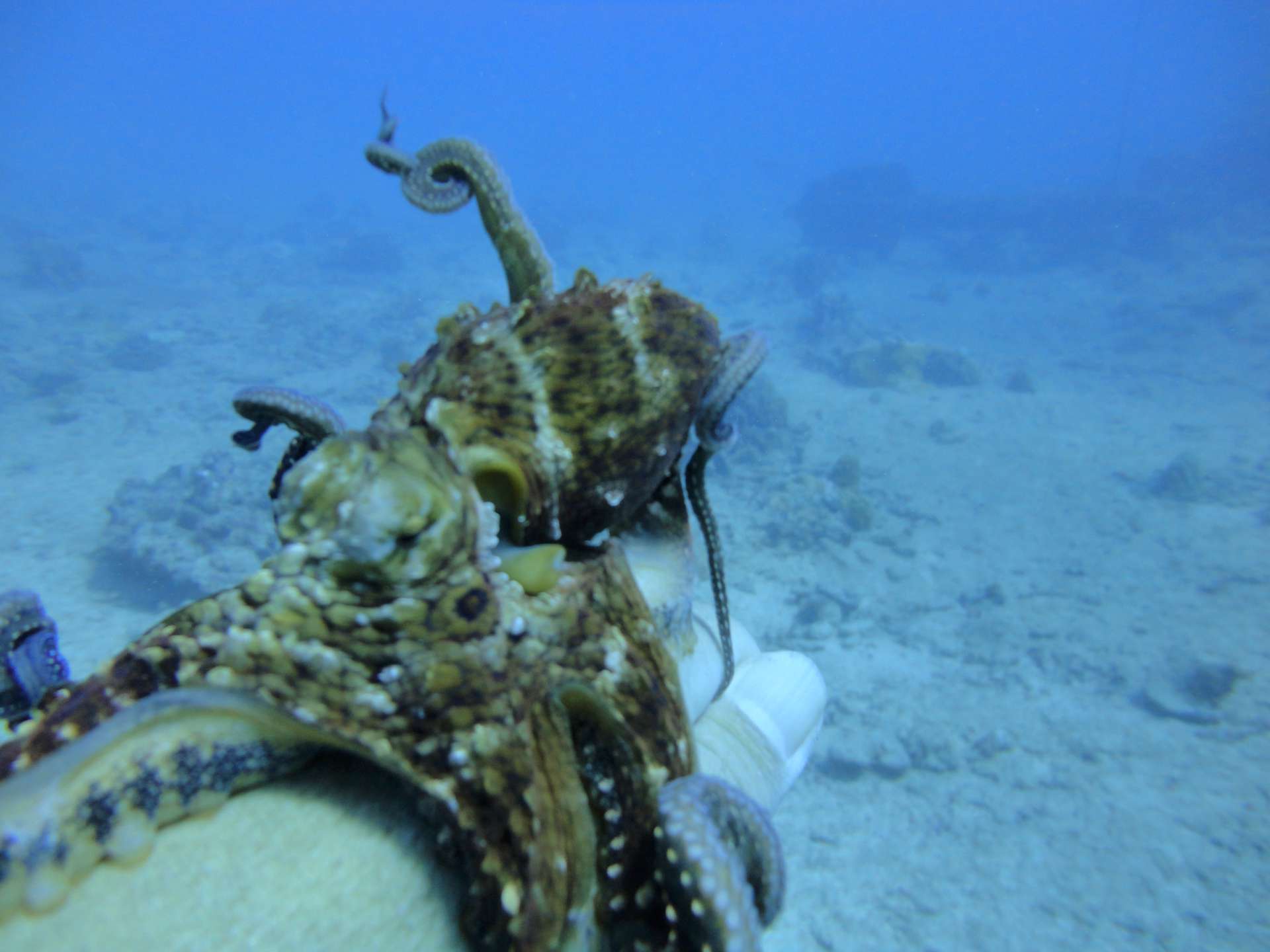 Excellent group of scuba divers today exploring the Sea Tiger shipwreck and Kewalo pipe reef. Several turtles, a few sharks and two octopus encounters on these dives. First dive was to a depth of 100' for about 20 minutes. Second dive was 50' for about 45 minutes.